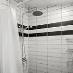 Gorgeous Home In Rudkobing With Wifi beschikt over een badkamer met een douche en een wasmachine. Een droger zijn inbegrepen om uw comfort te verhogen.